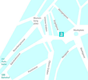 Unsere Kanzlei liegt im Zentrum von St. Gallen, 500m vom SBB Bahnhof entfernt. Zu Fuss Richtung Marktplatz bis zur Ecke Marktplatz/Engelgasse oder per Bus vom Bahnhof bis zum Marktplatz.
